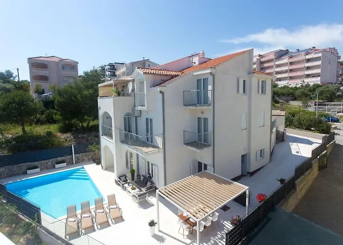 A Luxury Villa, 40 Sqm Heated Private Pool, Gym, Seaview, 200M To Beach, 7 Bedrooms Trogir está localizada a uma distância de 3.3 km da Cidade Histórica de Trogir e providencia windsurf, snorkeling e caminhada para os hóspedes ativos.